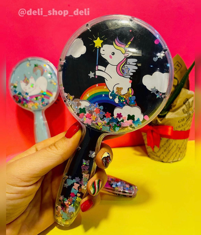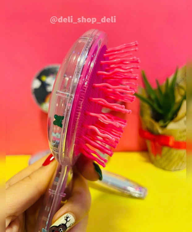 🍄برس مو طرح آکواریومی بوده و داخلش آب نداره. جنس پلیمری و با طراحی زیبا گره موها رو به راحتی باز میکنه و به موها حالت خوبی میده. برس بسیار خوش دست. سایز مناسبی داره. دندانه های این برس از جنس پلاستیک محکم است و به راحتی وزی و تاب خوردگی موهارو صاف میکنه 🍄