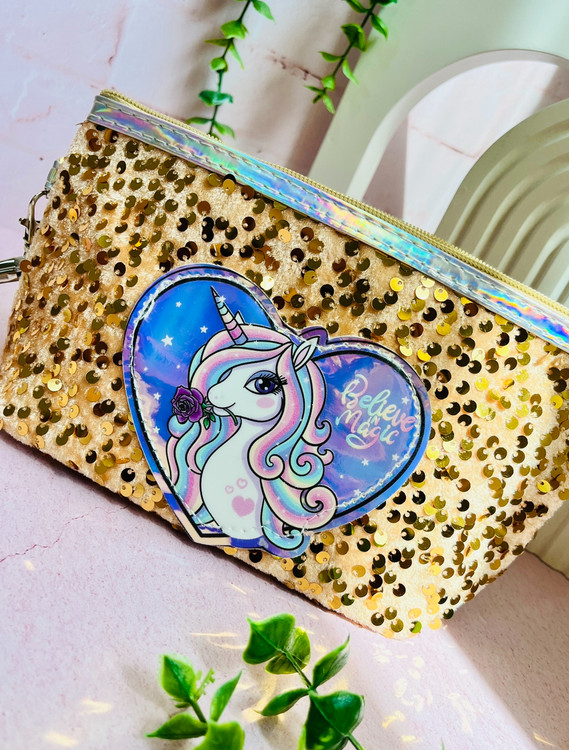 کیف آرایشی پولکی اسب تک شاخ آستردار